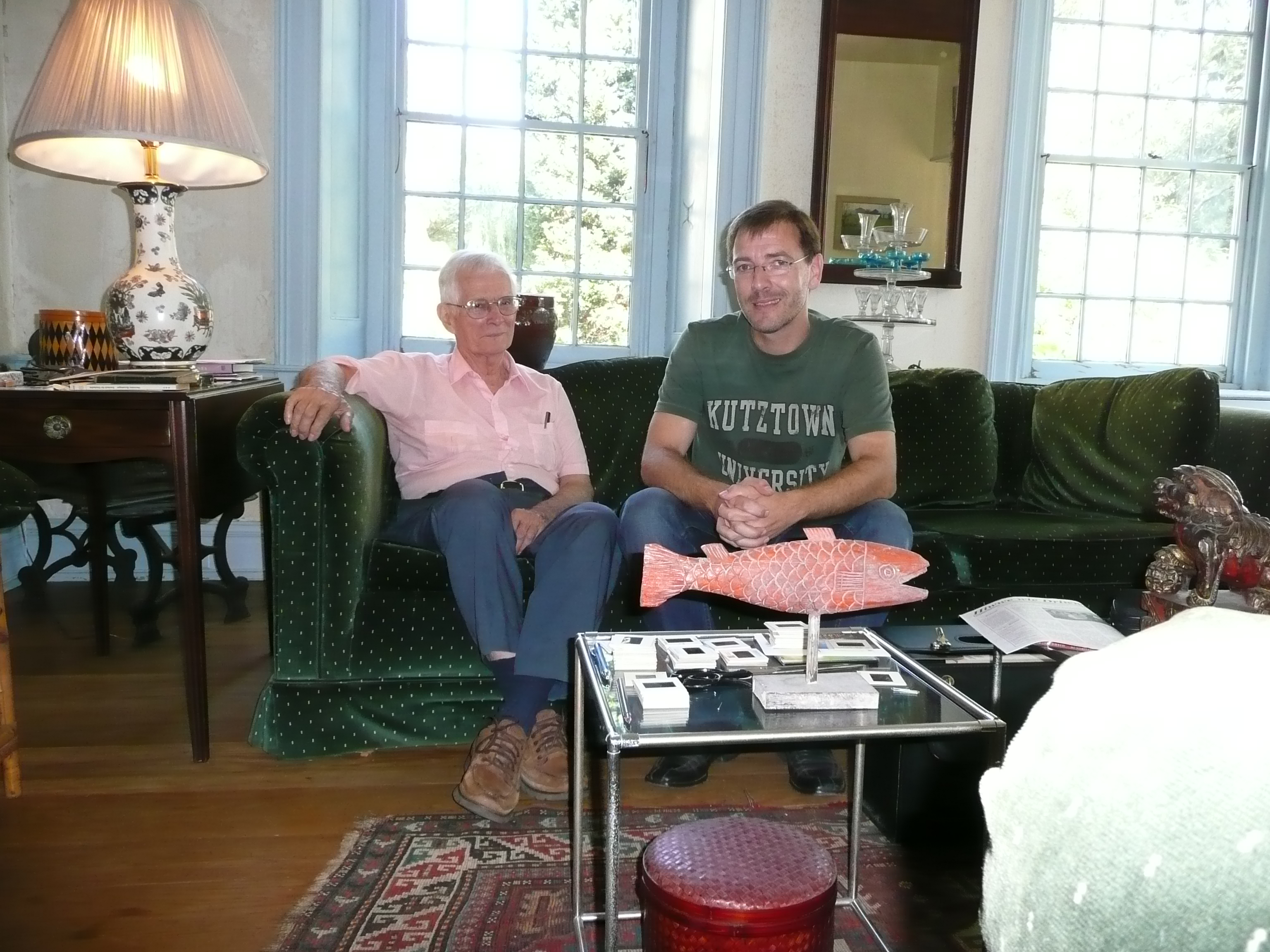 Don Yoder hatte ich mit Rolands Hilfe zweimal in einer Bibliothek getroffen, aber da der Kontakt aufgrund des gemeinsamen Interessensgebietes der pfälzisch-amerikanischen Nordamerikaauswanderung nun immer enger wurde, legte Roland mir einen längeren Besuch in Don Yoders Landhaus in Devon (PA) nahe. Ich wusste, dass Roland bei seinen längeren Pennsylvania-Aufenthalten immer in der kolonialen Villa von Don Yoder wohnte – und Don war bereit, mich auch privat zu empfangen, so dass ich in den Jahren zwischen 2000 und 2015 immer einmal wieder für mehrere Stunden Gelegenheit hatte, mich mit einem der Väter der pennsylvanisch-deutschen Volkskunde auszutauschen. Immerhin war Don Yoder einer der Gründer des Kutztown Folk Festivals im Jahr 1951.