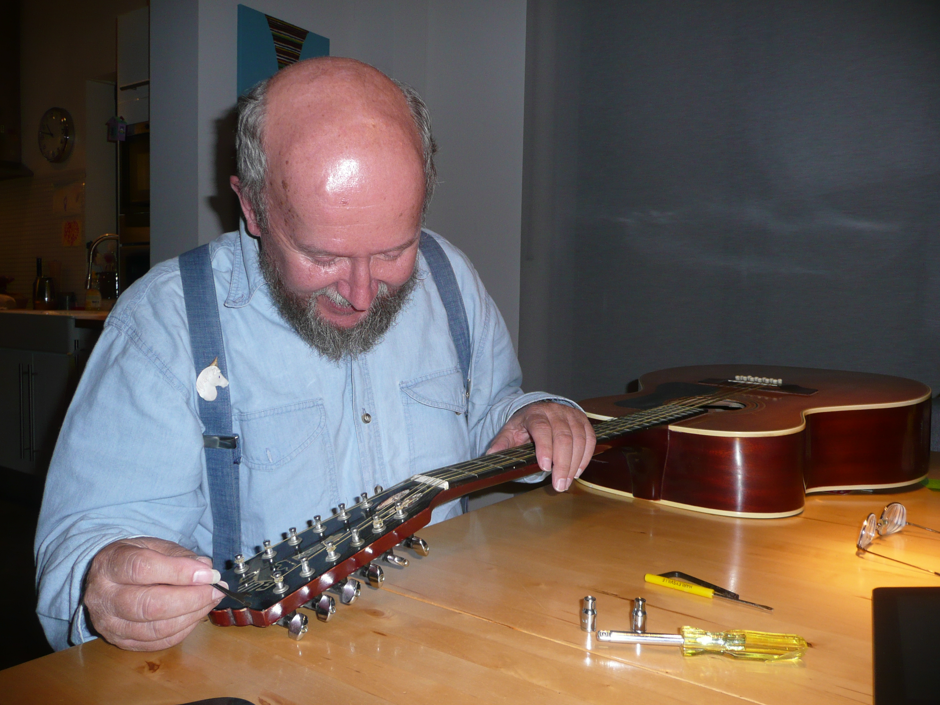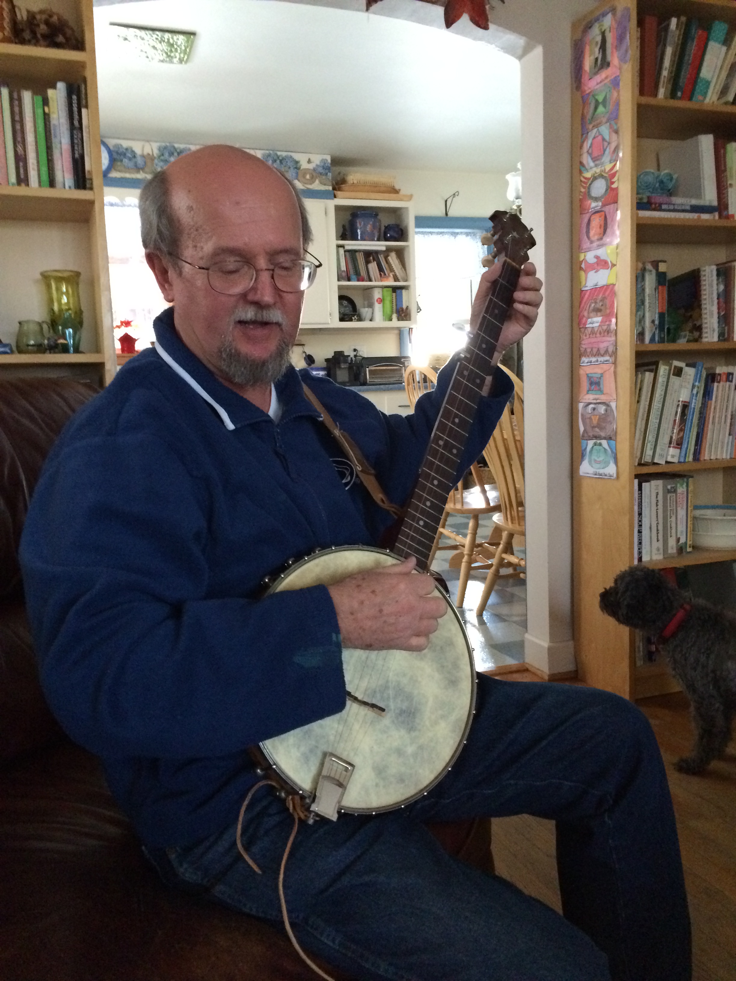 2015 nahm ich bei Mike Hertzog in der Musikschule bei Meadwood Music in Blandon (PA) einige Banjo-Unterrichtsstunden. Nicht viele, aber sie reichten, um mich auf der Bühne mit der „New Paltz Band“ mit dem Banjo nicht zu verletzen. Immerhin. Chris LaRose wies mich beim Besuch in Ober-Olm im Rahmen der “Hiwwe wie Driwwe Tour 2016” in die Clawhammer Technik auf dem Banjo ein.