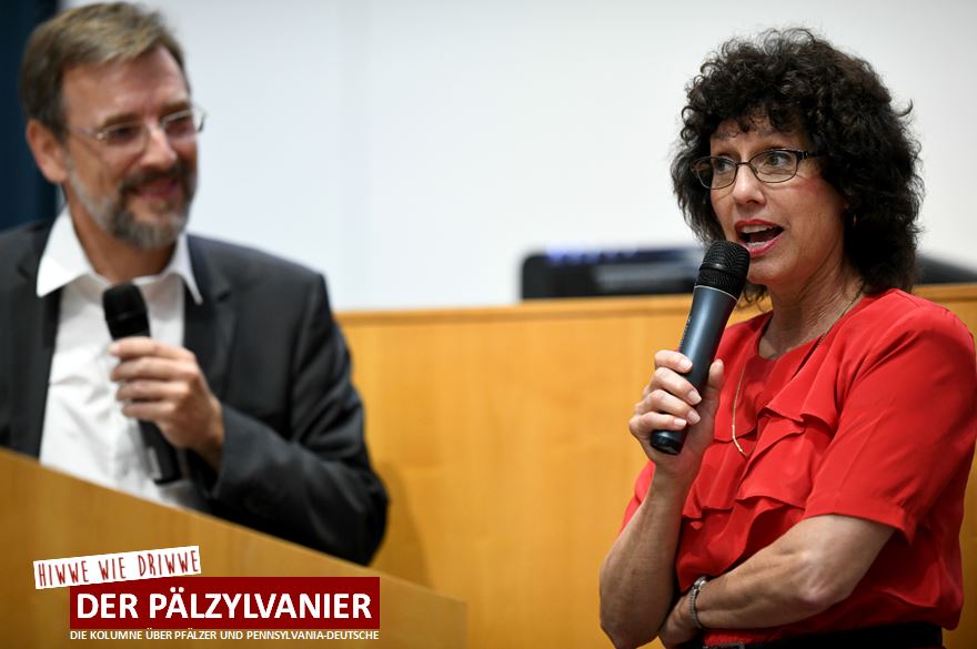 Als wir im Sommer 2018 den Film “Hiwwe wie Driwwe – Pfälzisch in Amerika” auf Einladung von Landtagspräsident Hendrik Hering im Parlament in Mainz im Rahmen einer Vorpremiere erstmals vorstellten, war sie mit ihrem Mann gerade zufällig per Schiff auf einer mehrtägigen Reise auf dem Rhein unterwegs. Da sie am selben Abend in der Landeshauptstadt anlegte, luden wir sie kurzerhand zur Vorstellung ein – ebenso wie Deutschlehrerin Ashley Snyder von der Conrad Weiser High School in Berks County, die zu diesem Zeitpunkt wieder einmal bei uns in Ober-Olm zu Gast war.