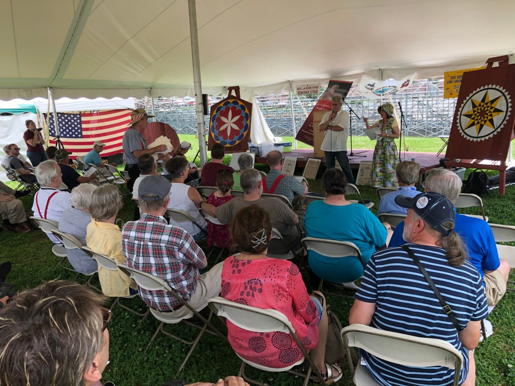 Daneben ist sie eine treue Teilnehmerin beim jährlichen „Schreiwerfescht“, das Prof. William Donner und Ed Quinter auf der „Seminar Stage“ des Kutztown Folk Festivals organisieren. Etwa zehn Teilnehmerinnen und Teilnehmer sind für gewöhnlich dabei. Mary Laub bringt auf diese Weise die Mundart zu den Menschen und stellt Lesestoff zur Verfügung, mit dem Großeltern ihre Enkelkinder mit der Sprache ihrer Enkelkinder in Kontakt bringen können. Es wäre viel gewonnen, wenn ihr Beispiel Schule machte.