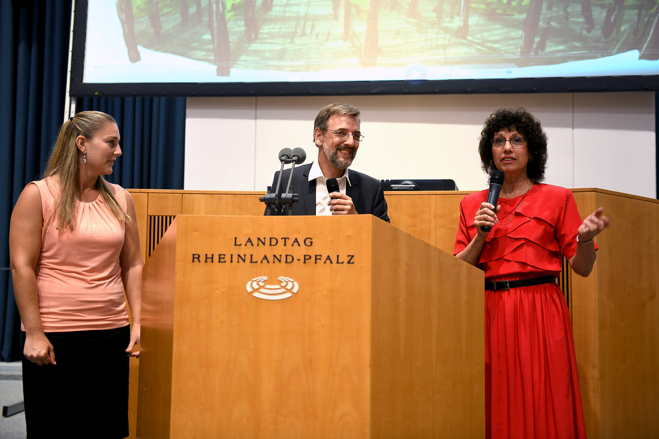 Als wir im Sommer 2018 den Film “Hiwwe wie Driwwe – Pfälzisch in Amerika” auf Einladung von Landtagspräsident Hendrik Hering im Parlament in Mainz im Rahmen einer Vorpremiere erstmals vorstellten, war sie mit ihrem Mann gerade zufällig per Schiff auf einer mehrtägigen Reise auf dem Rhein unterwegs. Da sie am selben Abend in der Landeshauptstadt anlegte, luden wir sie kurzerhand zur Vorstellung ein – ebenso wie Deutschlehrerin Ashley Snyder von der Conrad Weiser High School in Berks County, die zu diesem Zeitpunkt wieder einmal bei uns in Ober-Olm zu Gast war.