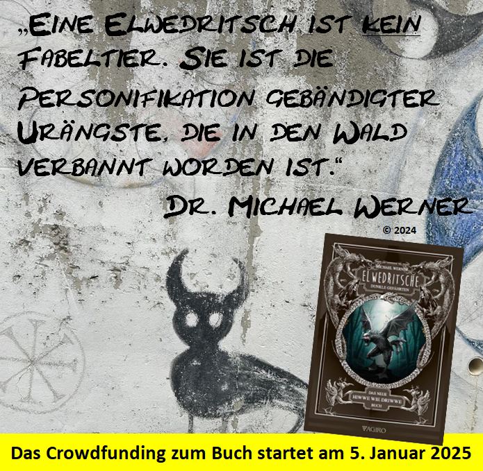 Heute habe ich eine KI gebeten, eine kurze Zusammenfassung meines Buches zu verfassen. Das kam dabei heraus: “Das Buch „Elwedritsche – Dunkle Gefährten“ von Michael Werner untersucht die soziokulturellen Ursprünge der pfälzischen und pennsylvaniadeutschen Elwedritsche-Tradition. Werner verknüpft jahrzehntelange Recherchen in den USA und Europa mit historischen und sprachwissenschaftlichen Analysen, um das Phänomen als Ausdruck uralter Ängste und kultureller Muster zu interpretieren, die bis in die indoeuropäische Vergangenheit zurückreichen. Der Autor verfolgt die Entwicklung von religiösen Vorstellungen, Brauchtum und Aberglauben, die mit der Elwedritsche in Verbindung stehen, und beleuchtet deren Wandel im Laufe der Geschichte. Das Buch verwebt dabei Mythen, Rituale und Volksglauben zu einem umfassenden Bild.”