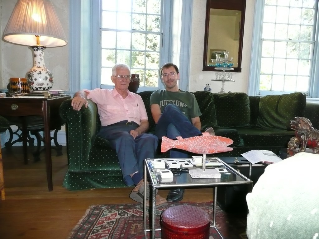 Don Yoder hatte ich mit Rolands Pauls (1951-2023) Hilfe zweimal in einer Bibliothek getroffen, aber da der Kontakt aufgrund des gemeinsamen Interessensgebietes der pfälzisch-amerikanischen Nordamerikaauswanderung nun immer enger wurde, legte Roland mir einen längeren Besuch in Don Yoders Landhaus in Devon (PA) nahe. Ich wusste, dass Roland bei seinen längeren Pennsylvania-Aufenthalten immer in der kolonialen Villa von Don Yoder wohnte – und Don war bereit, mich auch privat zu empfangen, so dass ich in den Jahren zwischen 2000 und 2015 immer einmal wieder für mehrere Stunden Gelegenheit hatte, mich mit einem der Väter der pennsylvanisch-deutschen Volkskunde auszutauschen. Immerhin war Don Yoder einer der Gründer des Kutztown Folk Festivals im Jahr 1951 – diese traditionsreiche Veranstaltung fand 2024 leider zum letzten Mal statt.