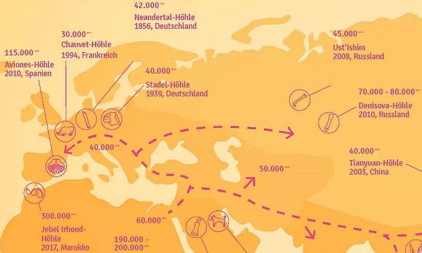 Heute wissen wir, dass sich der „moderne Mensch“ bereits vor etwa 300.000 Jahren über den gesamten afrikanischen Kontinent ausgebreitet hat. Die Menschheit entsteht also durch frühe Wanderungsbewegungen und eine komplexe Evolution auf dem ganzen afrikanischen Kontinent. Durch ein soziales Netzwerk werden Gene und Kulturtechniken über große Distanzen hinweg weitergegeben.