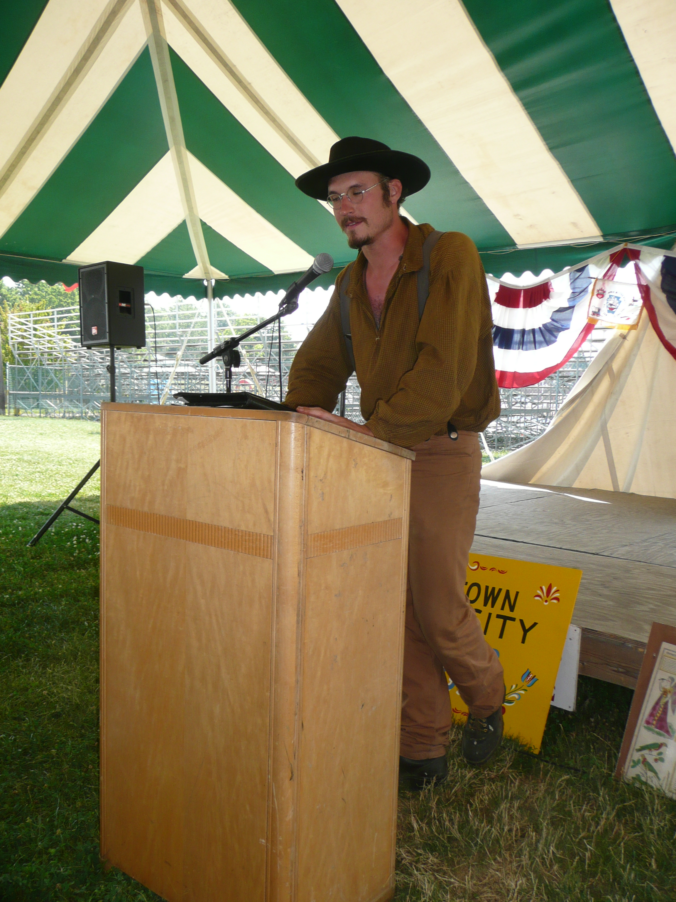 Ich bin nicht mehr sicher, wann mir Patrick zum ersten Mal begegnet ist. Es müsste im Jahr 2007 gewesen, als ich Ed Quinters Dialektklassen in Kutztown besuchte – man kann dort „Pennsylvania German“ im Nebenfach studieren. Vermutlich saß Patrick da in einer der Reihen unter den Studierenden. Ein Foto aus dieser Zeit habe ich nicht gefunden. Etwa 2011 wurde er Assistent von Prof. Rob Reynolds, dem damaligen Chef des Heritage Centers. Nach dessen Weggang übernahm er 2013 die Leitungsfunktion. Seit diesem Zeitpunkt arbeiten wir beim Projekt „Hiwwe wie Driwwe“ eng zusammen, und seit 2021 ist er Mitherausgeber der Zeitung.