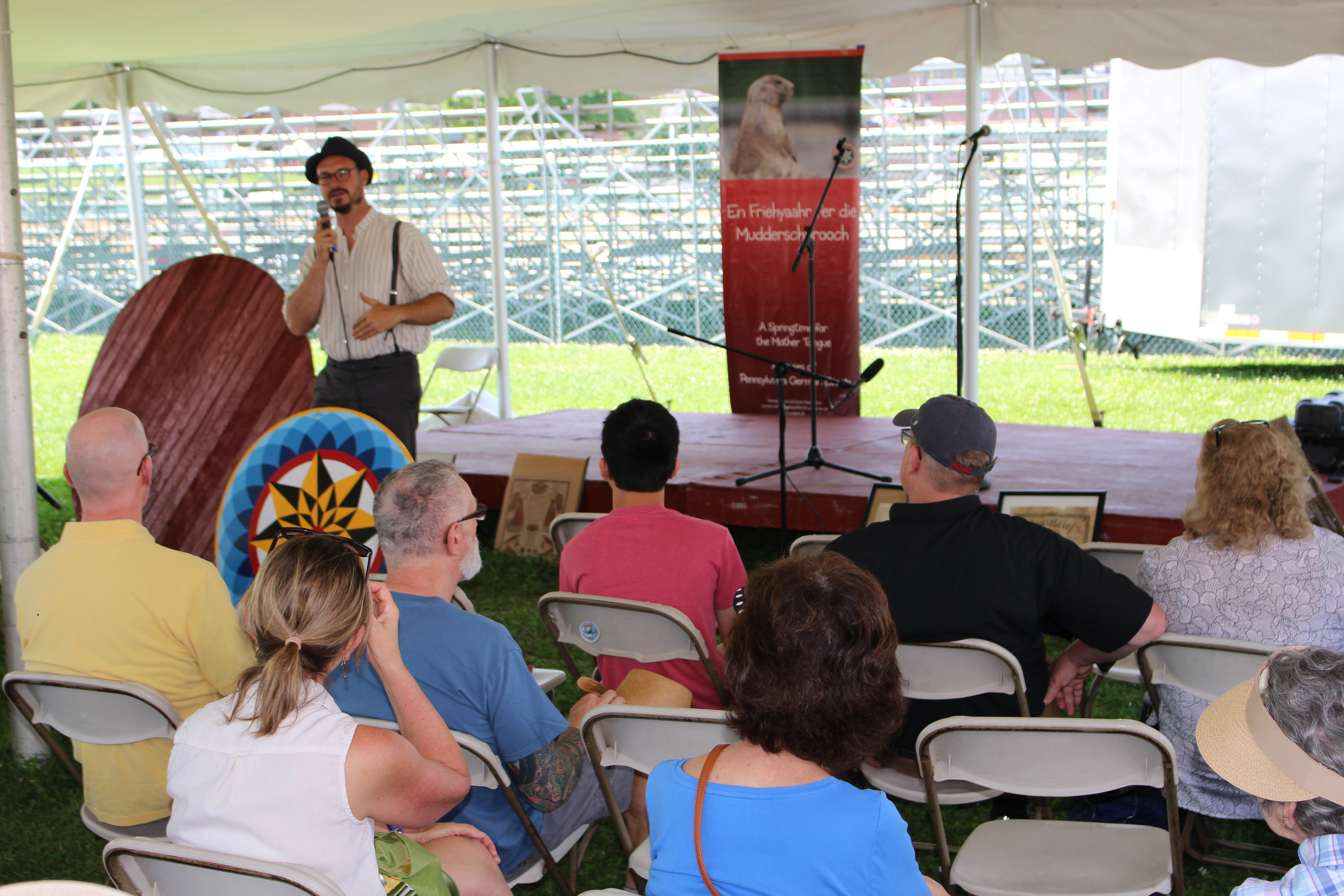 Patrick Donmoyer gehört zur zweiten Art Wissenschaftler. Er ist Direktor des Pennsylvania German Cultural Heritage Centers der Kutztown University – aber gleichzeitig eben auch Vorstandsmitglied von Grundsau Lodge No. 1, Sänger beim Dolpehocken Saenger Chor, Moderator der „Deitsch Schtunn“ auf Berks County TV, Mitherausgeber von „Hiwwe wie Driwwe“, aktiver Teilnehmer bei Folk Festivals und so weiter und so weiter. Dinge verstehen lernen, indem man sie selbst tut – das ist Patricks Devise.