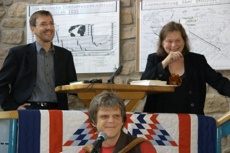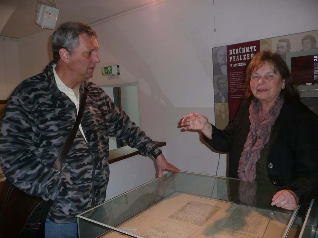Sie und Ihren Mann habe ich Ende der 1990er Jahre bei einem ersten Besuch kennengelernt. Wir haben Familie in Ulmet, das nur einen Katzensprung vom Museum entfernt ist. 2003 trat das Museum dem neu gegründeten „Deutsch-Pennsylvanischen Arbeitskreis e.V.“ bei, und seitdem arbeiten wir intensiv zusammen. Der erste Deutsch-Pennsylvanische Tag wurde 2006 in Oberalben begangen. Seit 2008 bringt „Hiwwe wie Driwwe“ jedes Jahr im Oktober mit der “Hiwwe wie Driwwe Palatinate Tour” einen Künstler bzw. eine Künstlerin aus Pennsylvania in die Pfalz, um Pfälzerinnen und Pfälzern an verschiedenen Orten die pennsylanisch-deutsche Kultur näherzubringen. Oberalben ist hier immer dabei, und so ist die Liste der Menschen lang, die schon im Auswanderermuseum gesungen oder gesprochen haben: John Schmid (2010, 2015, 2020, 2023), Don Breininger (2011), Keith Brintzenhoff (2012), Richard Miller (2013), Bill Meck (2014), Chris LaRose (2016), Mike & Linda Hertzog (2017), Patrick Donmoyer (2018), Benjamin Rader (2019), Erich Mace (2022), Doug Madenford (2017, 2022) und Scott Reagan (2024).