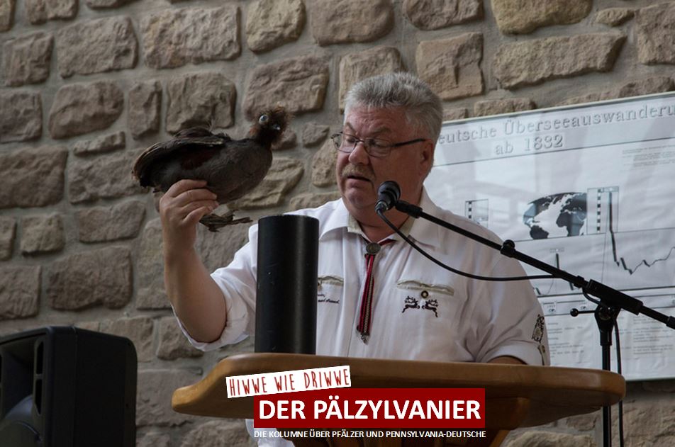 Auf seinem Folgevortrag war ich nicht gewesen, aber wir waren seitdem in Kontakt und einem freundschaftlichen Austausch. Er besuchte Veranstaltungen des Deutsch-Pennsylvanischen Arbeitskreises, und manchmal sah man ihn auch in Bockenheim bei Mundartveranstaltungen. Mich interessierte das Thema Tritschologie, und gleichzeitig wurde mir bei meinen regelmäßigen Aufenthalten in Pennsylvania immer mehr klar, dass hier etwas nicht stimmt: Die Gebräuche “hiwwe” und “driwwe” sind – abgesehen von der Jagd als solcher – einfach zu unterschiedlich. Die Elwedritsch in der Pfalz gilt als lustiger, aber scheuer Vogel. Die pennsylvanische Elbedritsch kommt düster-dämonisch daher, und man hält sich das, was sich dahinter verbirgt, besser vom Leib. Haus und Hof schützt man vor diesem Einfluss. Das passte nicht zusammen. Der Widerspruch löst sich erst auf, wenn man die Elbedritsch in Pennsylvania als 300 Jahre ältere Variante des fantastischen Tierwesens begreift, das man heute in der Pfalz jagt. Ich sprach öfter mit Wilhelm über das Thema, auch über meinen Entschluss, ein Buch zum Thema “Elwedritsche” zu schreiben und der Geschichte darin auf den Grund zu gehen. Er hat mich bestärkt und das Crowdfunding noch im Januar 2025 großzügig unterstützt. Als ich ihm im April das fertige Buch schickte, blieb es jedoch unerwartet ruhig. Da ich wusste, dass seine Gesundheit seit längerem angeschlagen war, rechnete ich mit einem Anruf oder einer Mail zu einem späteren Zeitpunkt. Jetzt erreichte mich die Todesnachricht, die mich sehr traurig macht.