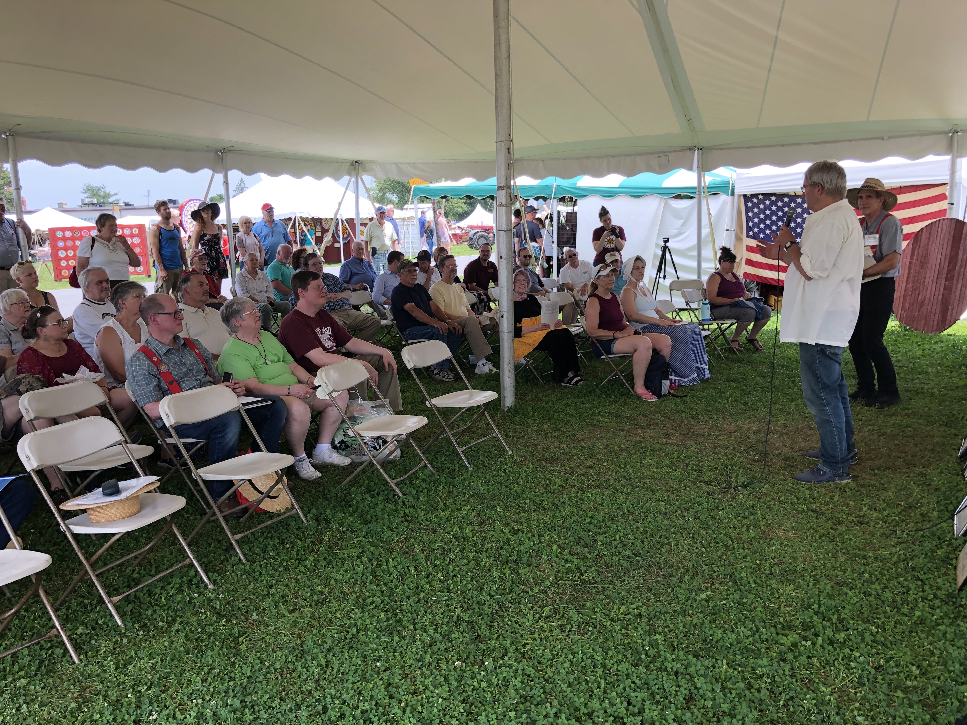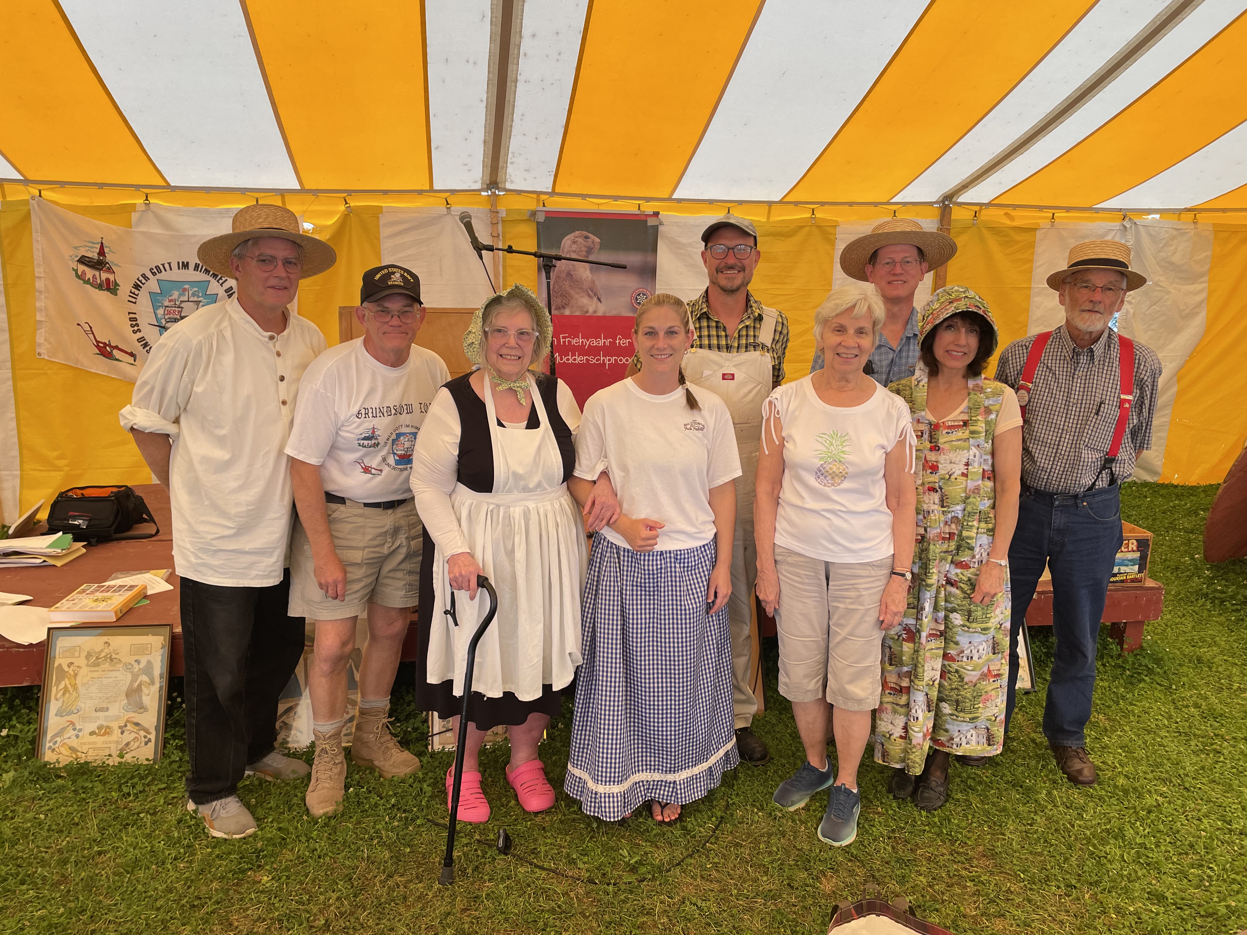Ich denke, ich kenne Ed ungefähr seit 25 Jahren, und wir sprachen bisweilen über den Pfälzischen Mundartdichter-Wettstreit in Bockenheim, in dessen Jury ich seit 1998 mitarbeite. Ungefähr 2005 – also vor 20 Jahren – muss es gewesen sein, als er auf die Idee kam, etwas Vergleichbares auch beim Kutztown Folk Festival auf die Beine zu stellen. Erstmals 2006 präsentierten etwa 10 Autorinnen und Autoren auf der “Seminar Stage” in einem gelb-weißen Zelt ihre Texte vor Publikum. Meist fanden sich um die 40 Personen ein, die diese Texte hören wollten – bei einem Festival, das täglich viele tausend Menschen anzog. Ist das wenig? Ich finde, das war ein Riesenerfolg. Ed gelang es, bis zum traurigen Ende des Festivals im Jahr 2024 immer wieder knapp ein Dutzend Schreiberinnen und Schreiber auf die Bühne zu bringen. 2025 fand die Präsentation im Rahmen der Veranstaltung zum offiziellen “Pennsylvania German Day” am 28. Juni im “Pennsylvania German Cultural Heritage Center” in Kutztown statt.