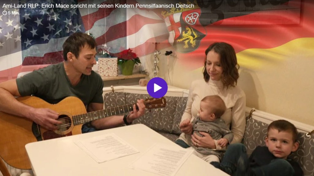 Erich Mace redet Deutsch am liebsten im Dialekt. Kennengelernt hatte er das Pennsylvanisch-Deitsche bei seinen Großeltern, doch die hatten es nicht an die nächsten Generationen weitergegeben. Gelernt hat der Amerikaner es erst als Erwachsener und war froh, als er mit seiner Familie nach Frankenthal ziehen konnte, um mit dem Pfälzischen auch seinen Dialekt zu verbessern. Der Dialekt rund 20 Kilometer um Mannheim herum ist dem Pennsylvanisch-Deitschen am ähnlichsten. Von daher hat sich die Familie den richtigen Wohnort ausgesucht. Erich Mace spielt auch pennsylvanisch-deitsche Musik und ist unter anderem schon im pfälzischen Bockenheim und dem rheinhessischen Essenheim aufgetreten.