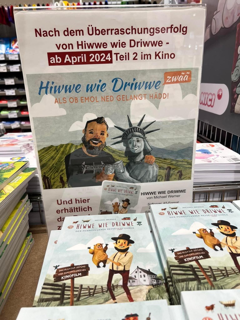 2021 entstand mit “Hiwwe wie Driwwe – Der Pennsylvania ReiseVERführer” das Buch zum Film, und 2024 gab es mit “Hiwwe wie Driwwe 2” auch eine Fortsetzung, bei der sich diesmal der Pfälzer Monji El Beji auf die Reise nach Pennsylvania machte.