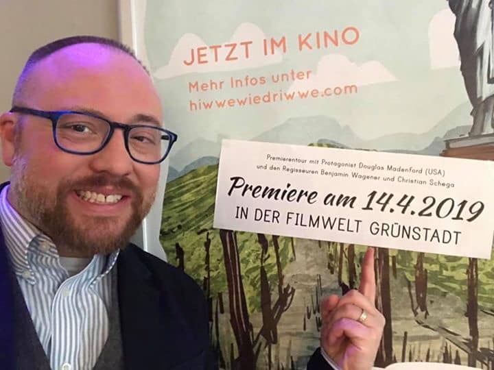 Als der südpfälzer Filmemacher Christian Schega mich 2017 kontaktierte und fragte, ob ich Interesse hätte, bei einem Filmprojekt zum Thema “Pennsylvania-Deutsch” mitzumachen, habe ich nach einer ersten Besprechung gerne zugesagt. Als Protagonist schlug ich ihm und Co-Regisseur Benjamin Wagener Douglas Madenford vor, den ich seit vielen Jahren kannte und der Co-Editor der Zeitung “Hiwwe wie Driwwe” ist. Als Deutschlehrer einer High School kennt er beide Seiten: die amerikanische und die deutsche. Und da er auf einem pennsylvanisch-deutschen Bauernhof aufgewachsen ist und den Dialekt spricht, passte er perfekt. Im Film macht er sich von Pennsylvania aus auf die Reise in die Pfalz, um nach seinen kulturellen Wurzeln zu suchen. Als sich im Laufe der Arbeiten herauskristallisierte, dass für den Film kein Name als Titel besser passt als “Hiwwe wie Driwwe”, habe ich als Rechteinhaber diesen dem gemeinsamen Projekt gerne geliehen.