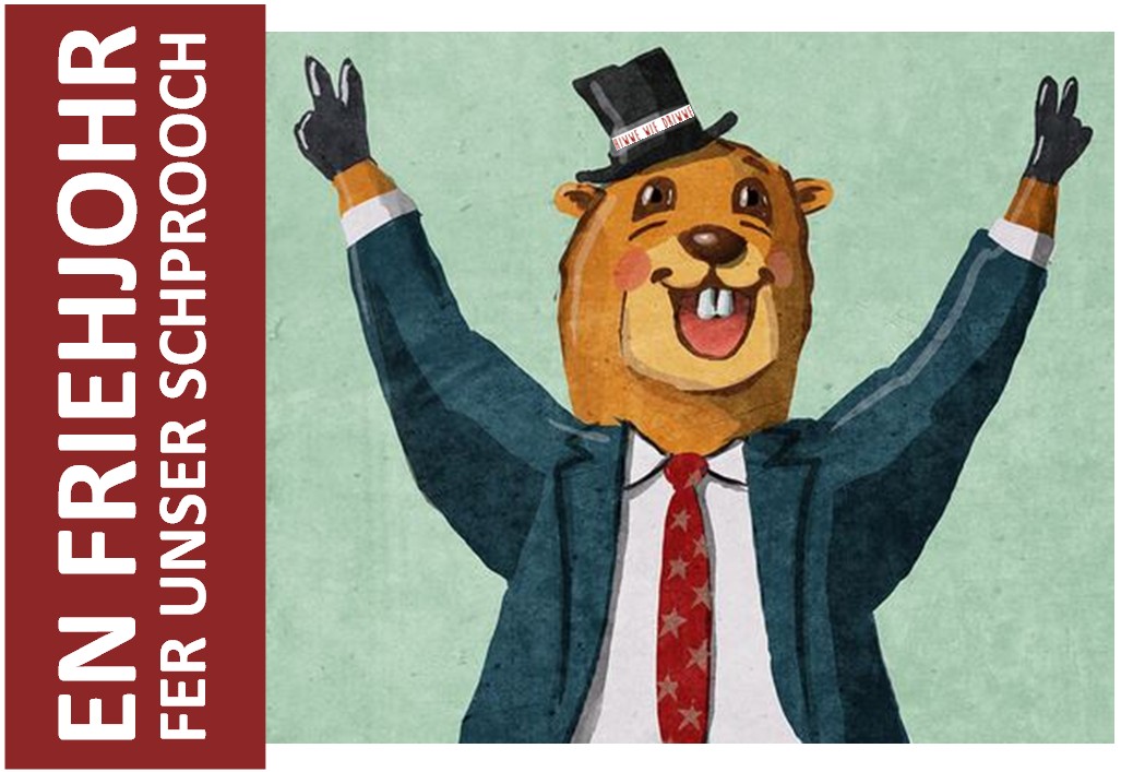 “Hiwwe wie Driwwe” unterstützt verschiedene Initiativen, die sich darum bemühen, die regionalen Mundarten wieder mehr ins Bewusstsein zu rücken – mal direkt, mal indirekt. Im Elsass gibt es seit vielen Jahren die Initiative “E Friehjohr fer unseri Sproch“. Das Frühjahr ist ein wunderbarer Zeitpunkt für eine Aktion dieser Art. Und während im Elsass die Schwalbe ein schönes Symbol darstellt, passt im pfälzisch-pennsylvanischen Kontext natürlich das Murmeltier: die Grundsau! Und so listen wir hier Mundart-Veranstaltungen, die zwischen Murmeltierttag Anfang Februar und Ende April 2026 durchgeführt werden.