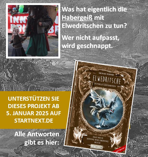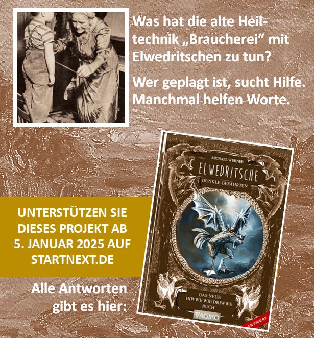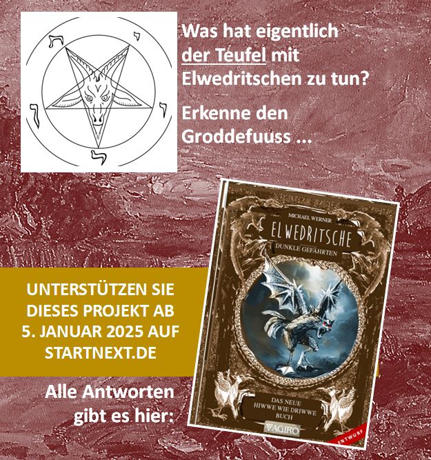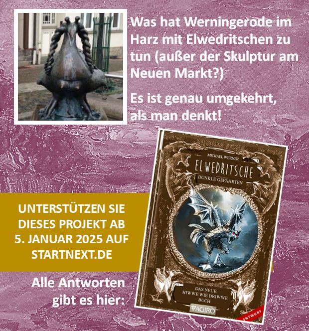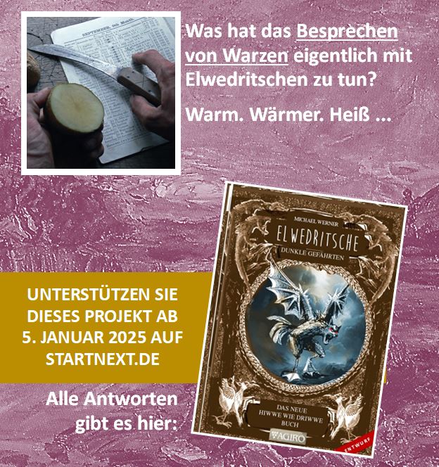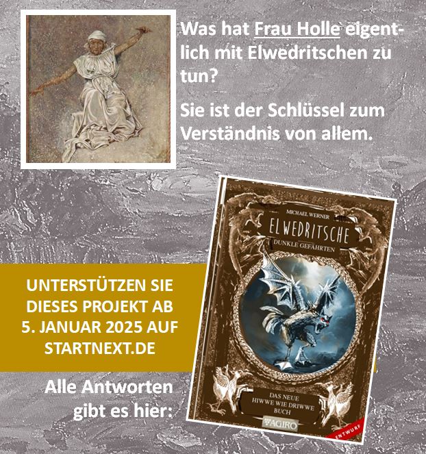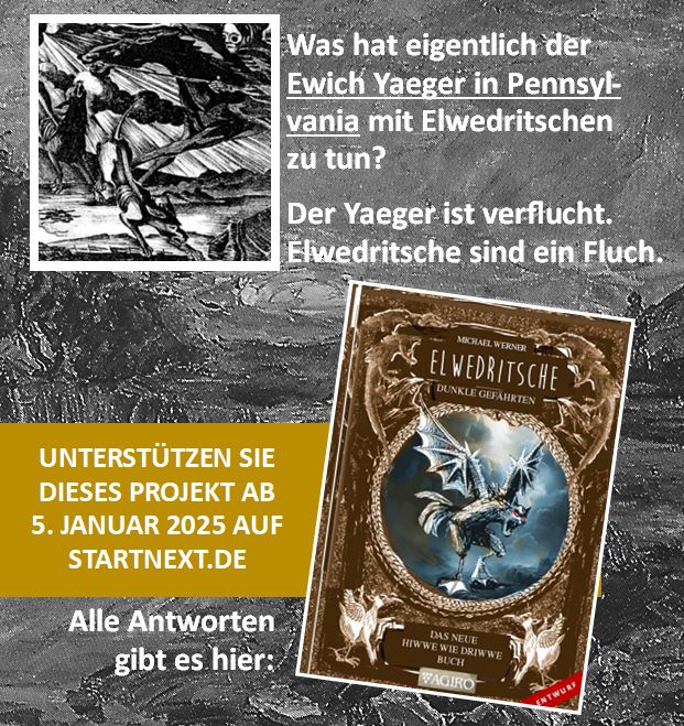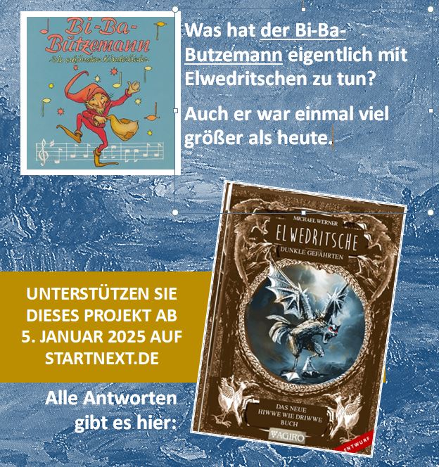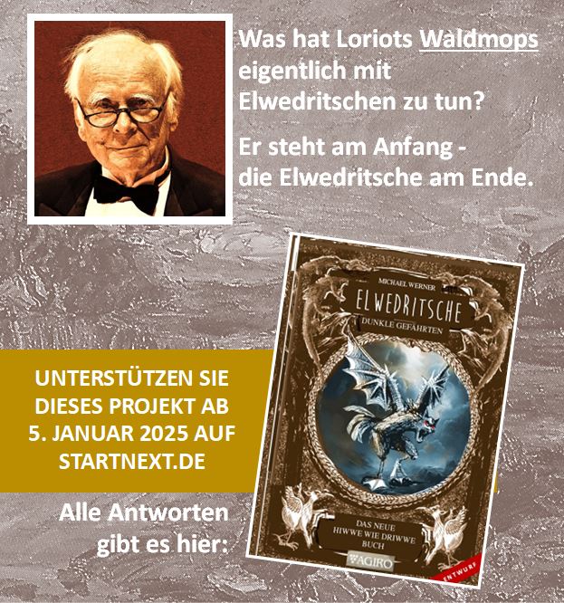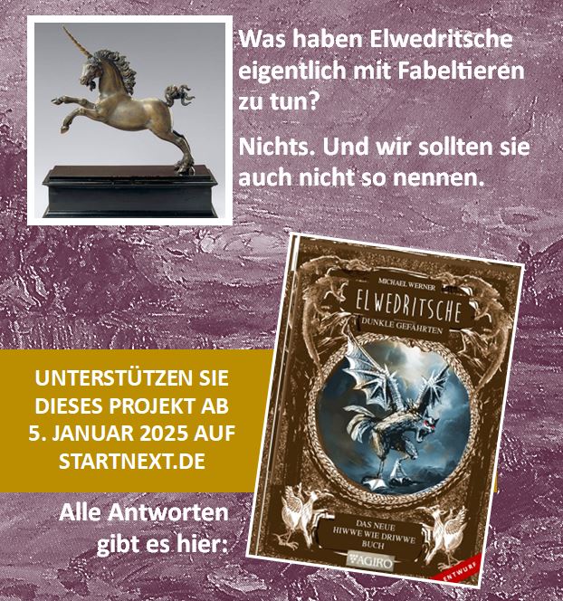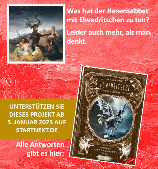 Seit Frühjahr 2025 ist das Buch “Elwedritsche – Dunkle Gefährten” in den Buchhandlungen zu erwerben, und seit kurzem ist die Website “paelzer-elwedritsche.de” online. Hier werden ergänzende Hinweise gegeben, Quellen genannt oder gleich komplett publiziert sowie interessante Links angegeben. Auf dieser Website findet auch eine fortlaufende Aktualisierung statt. Denn uns erreichen wöchentlich neue Hinweise, die das Bild vervollständigen.