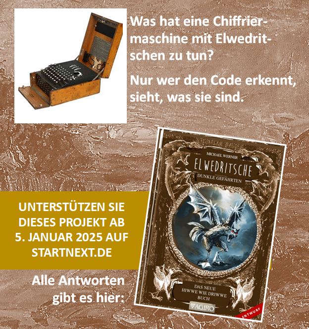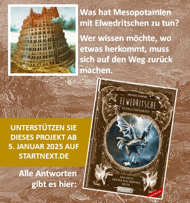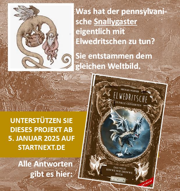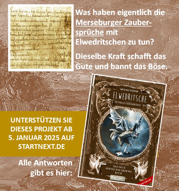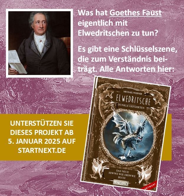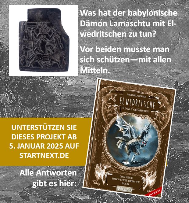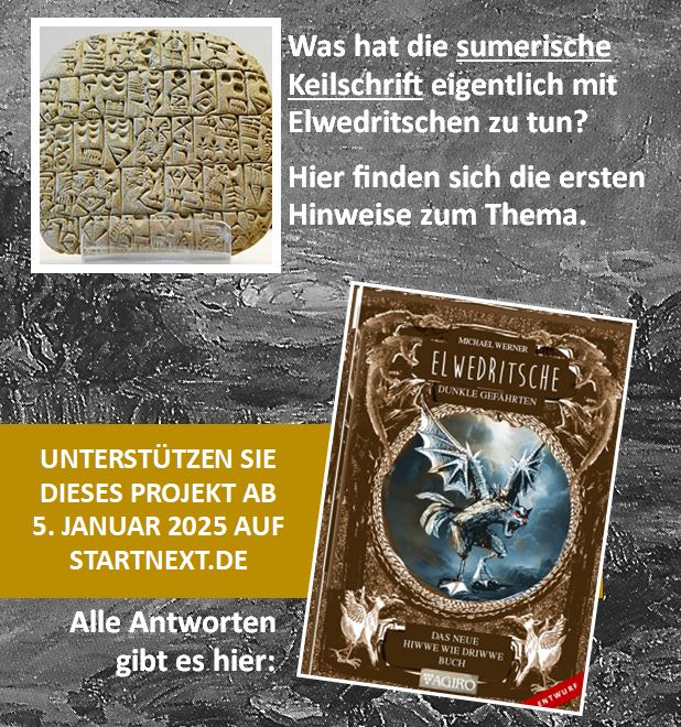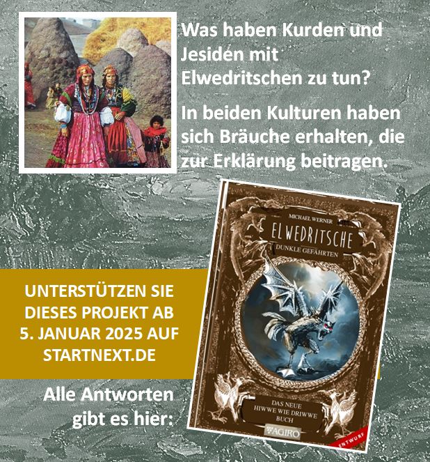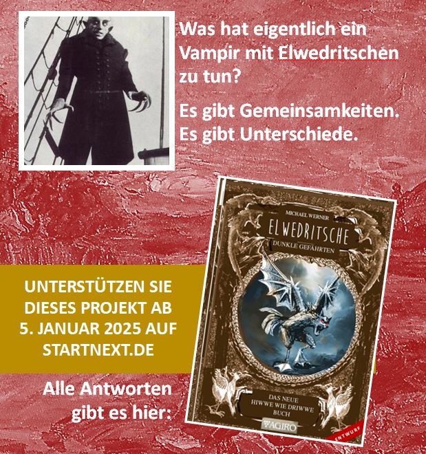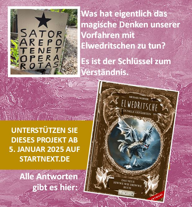 Seit Frühjahr 2025 ist das Buch “Elwedritsche – Dunkle Gefährten” in den Buchhandlungen zu erwerben, und seit kurzem ist die Website “paelzer-elwedritsche.de” online. Hier werden ergänzende Hinweise gegeben, Quellen genannt oder gleich komplett publiziert sowie interessante Links angegeben. Auf dieser Website findet auch eine fortlaufende Aktualisierung statt. Denn uns erreichen wöchentlich neue Hinweise, die das Bild vervollständigen.