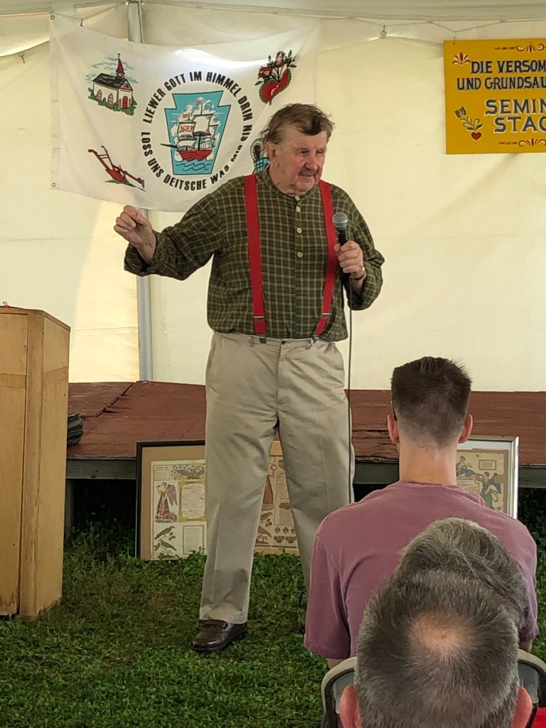 Mit Noah G. Good hatte ich seit 1993 im Briefverkehr gestanden. Er war in seinem Arbeitsleben Schulleiter einer mennonitischen Schule in Lancaster County gewesen, war ein recht bekannter mennonitischer Prediger und schrieb immer wieder Geschichten in Pennsylvania-Deutsch im „Mennonite Quarterly“. Deshalb lernten wir uns kennen.